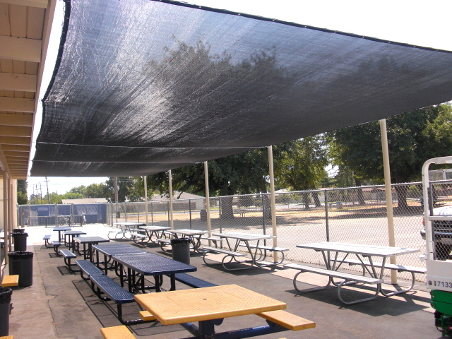 Our 70-95% mesh fabric sun shades provide a cooler, more comfortable, relaxing place under the extreme summer heat.